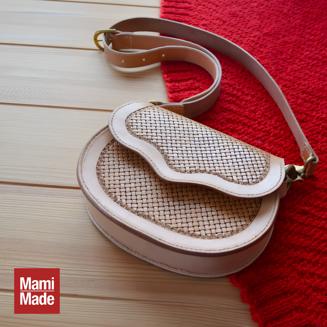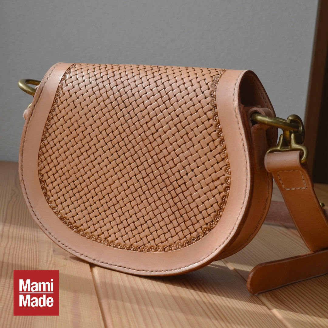 革職人が一つひとつ丁寧に仕上げた、バスケットスタンプ模様の本革ショルダーバッグ。