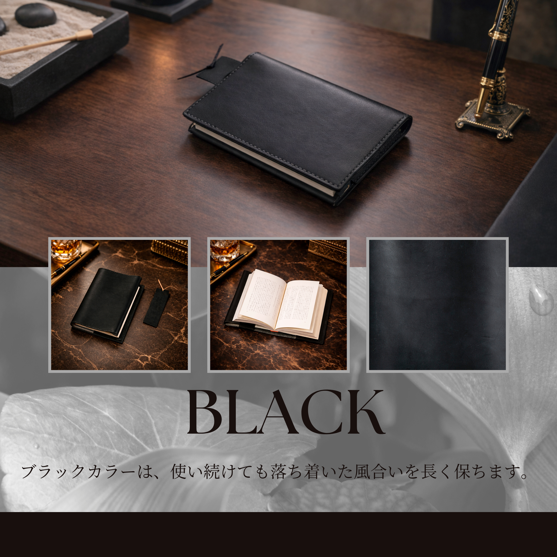 ブラック:落ち着いた風合いを長く保ちます。