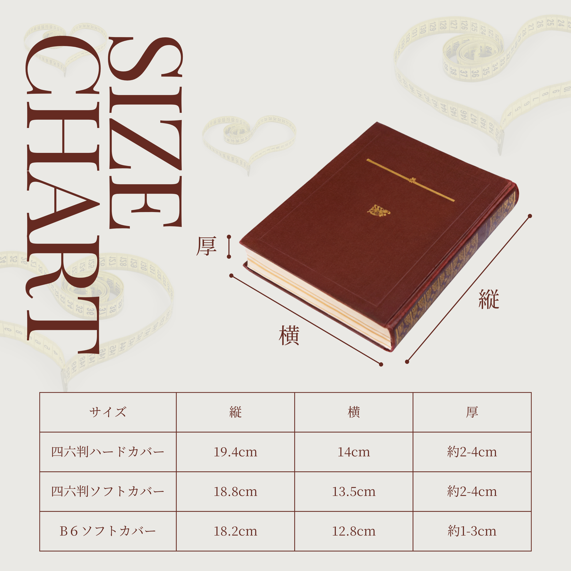 ご注文時、備考欄に本の寸法(縦×横×厚み)やご希望をお書き添えください。
