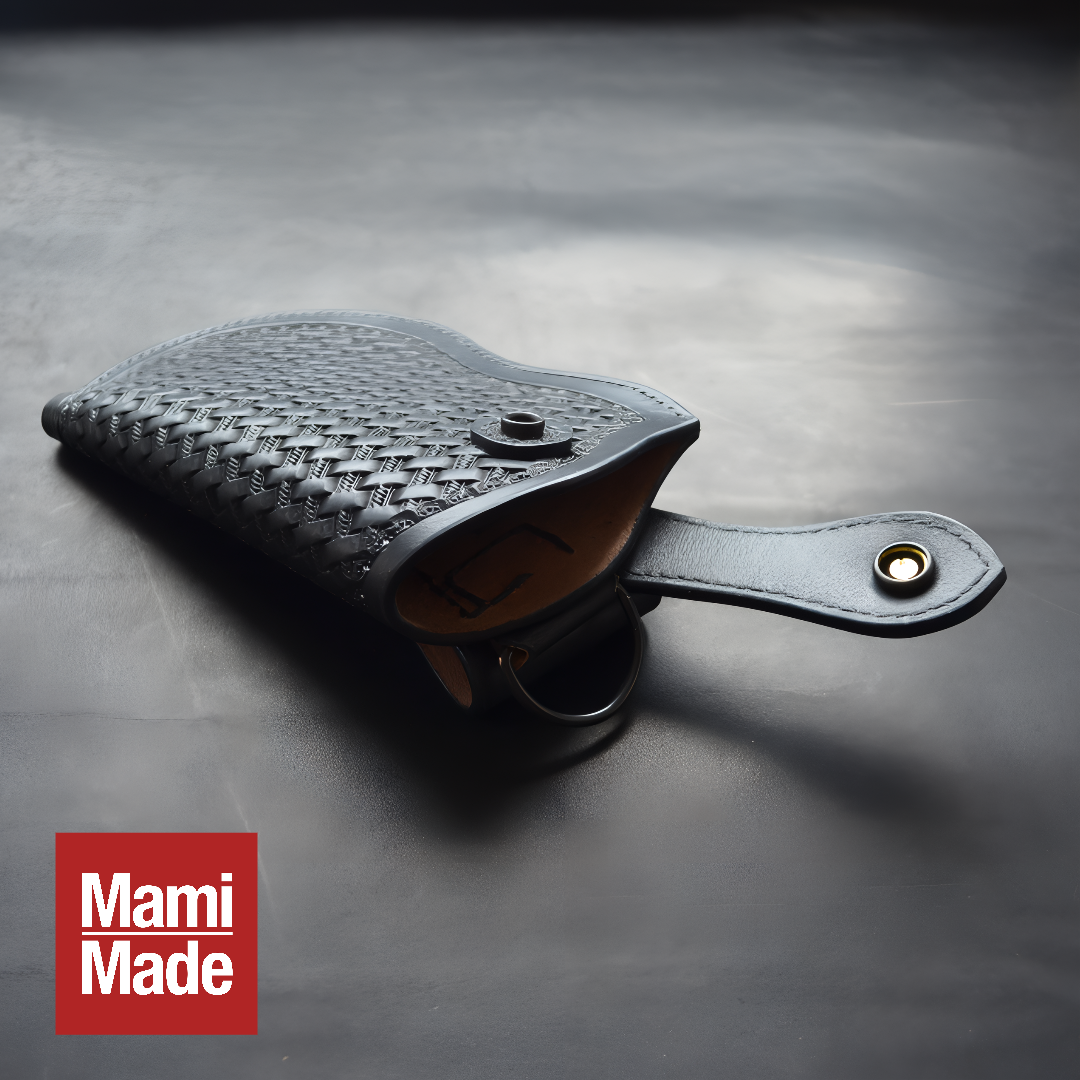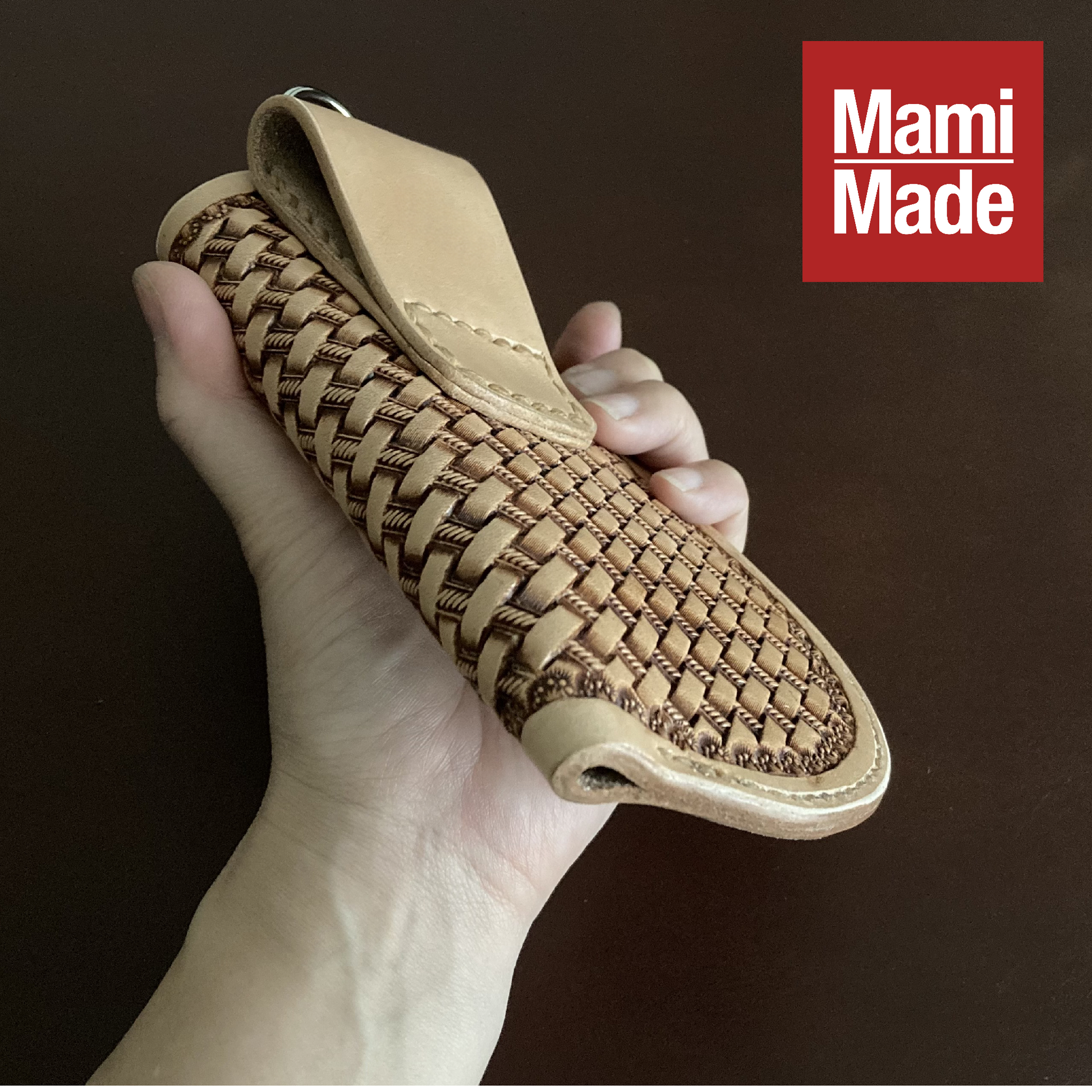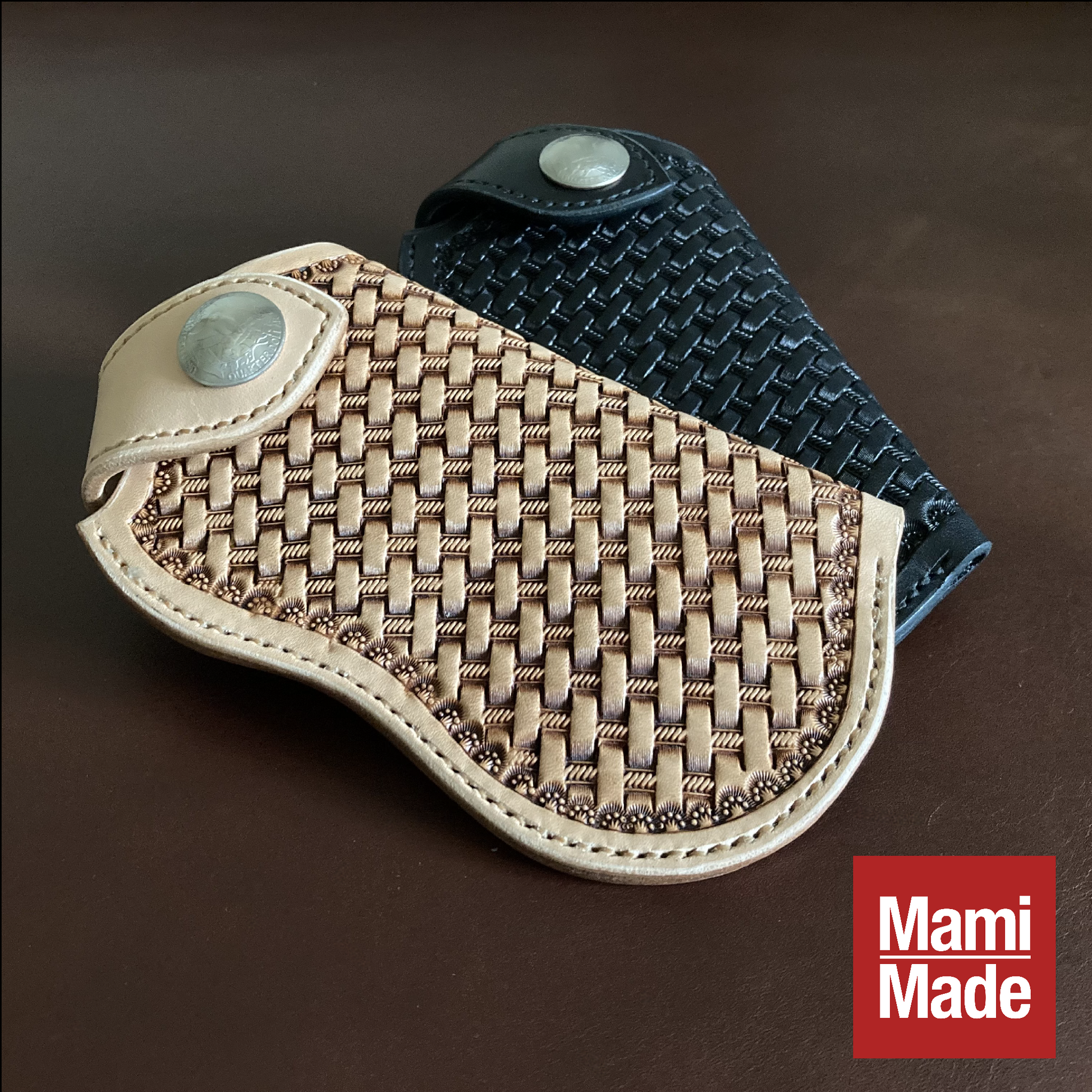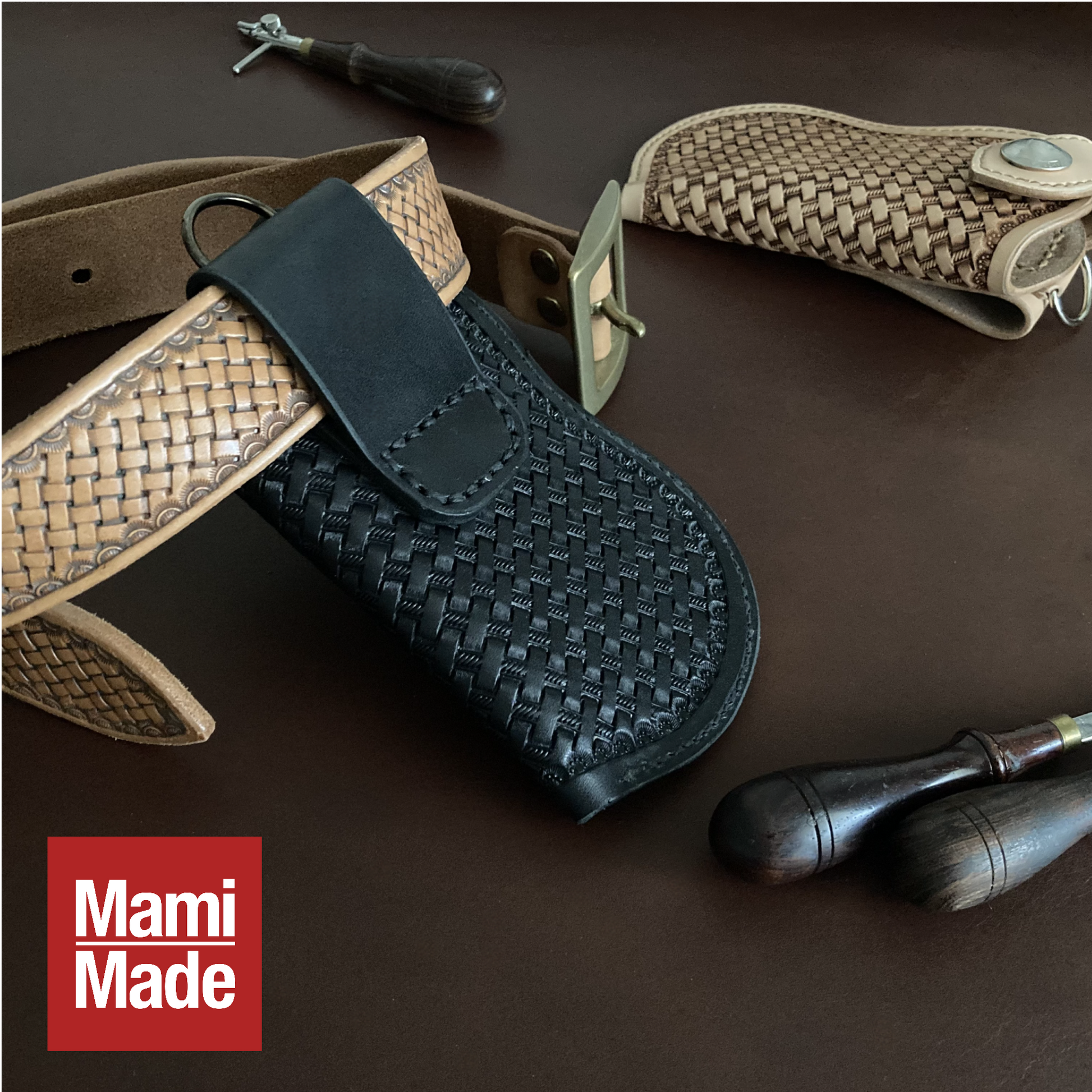 レザー スマホホルダー|牛革|バスケットスタンプ|MamiMade 革製スマホケース|ベルト装着タイプ