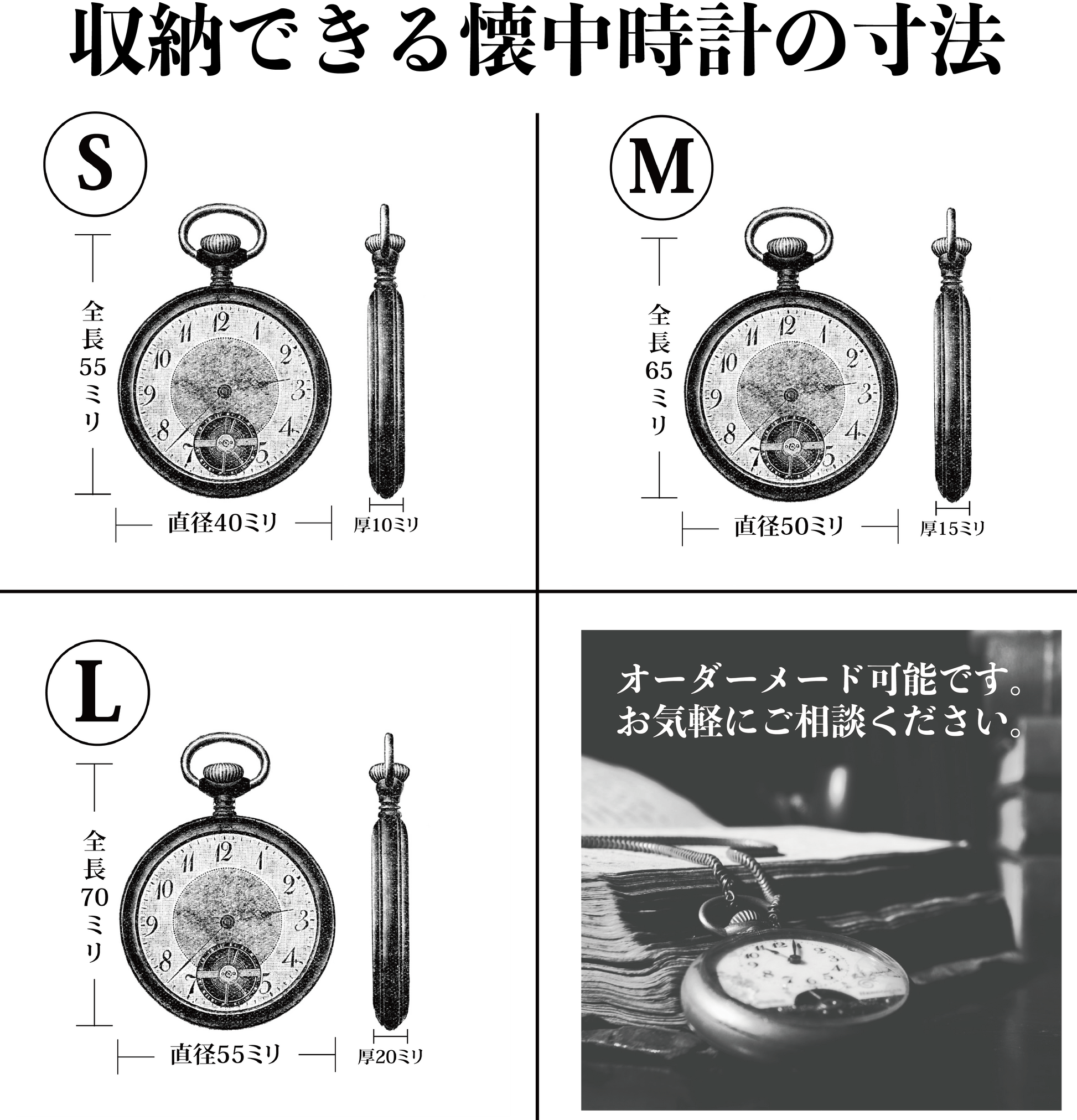 ご注文前に、お手持ちの懐中時計のサイズを必ずご確認ください。